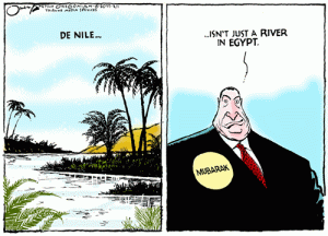 It is not really surprising that, a few days before his arrest, Hosni Mubarak–beleaguered by the news that one hundred thousand people turned out to demand his prosecution and that those of his former cronies still in power seemed to be listening to them–issued a statement defending himself and calling accusations of corruption false.