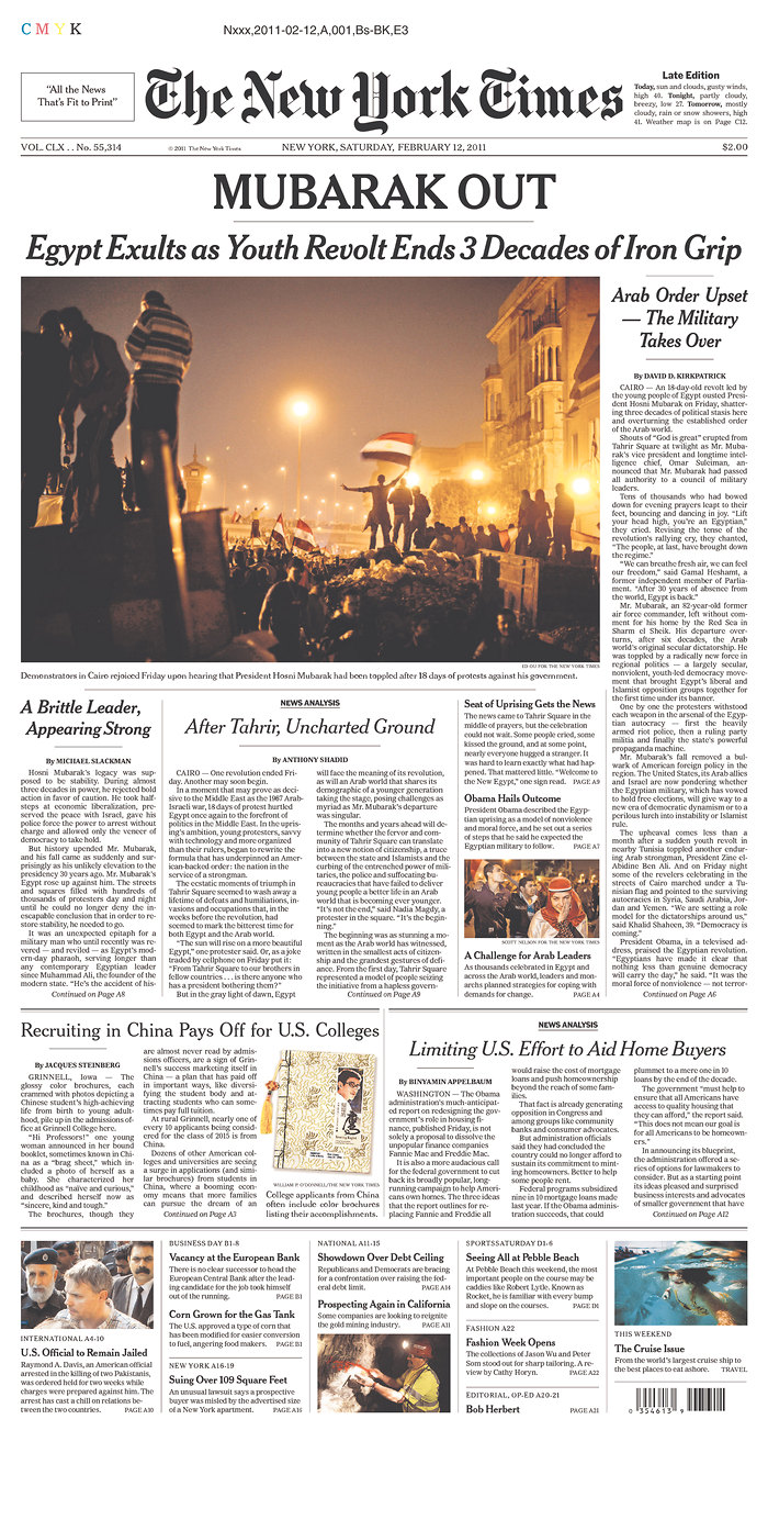 In “Overthrowing the Protest Paradigm? How The New York Times, Global Voices and Twitter Covered the Egyptian Revolution” authors Summer Harlow and Thomas Johnson of the University of Texas-Austin offer not only a content analysis of the New York Times coverage of the Egyptian uprising, but compare it to content analysis of columnist Nicholas Kristof’s Twitter feed, and the citizen media site Global Voices, finding that the different authors and genres framed their news quite differently.