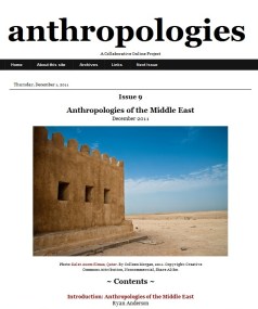 Anthropologies — a web journal published by the graduate students at the University of Kentucky’s Anthropology Department–has released a special issue on the Middle East.