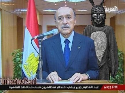 - Jokes that switched the MBOS for someone else—putting the Angel of Death, the evil rabbit from Donny Darko, the Panda from a series of Egyptian dairy ads, and so forth in his place behind Omar Suleiman