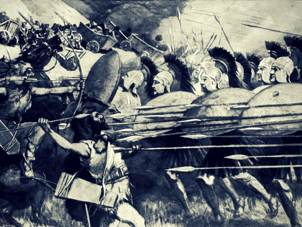 John described the way that Greek citizen soldiers–hoplites–fought during the Archaic and Classical periods (ca. 750–350 BC) in a formation called the phalanx. The hoplites would line up in ranks in close order and lock their shields together, while the first few ranks of soldiers would project their spears out over the first rank of shields. The hoplites thus presented to the enemy a shield wall with a mass of spear points projecting from it, which made frontal assaults against the phalynx difficult.